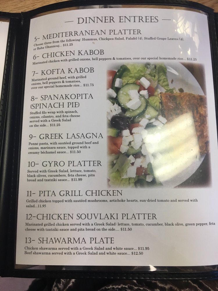 The salads, such as the robust Greek Salad and creamy Caesar Salad, are perfect for those seeking a fresh, vibrant meal. Don't miss their signature appetizers like Hummus & Pita and Baba Ghanooj, ideal for sharing or enjoying solo. Customers rave about the warm, fluffy pita that enhances every dish.